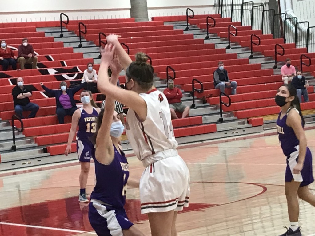 Consecutive 3-pointers by Riggs brought the Cardinals to within 27-24 at the 5:45 mark of the third quarter. Greenwich took its first lead of the game when Wilson made a short jump shot with 4:35 to go in the third quarter, making it 28-27. Senior Marielle Povinelli followed by burying a shot from beyond the arc from the left corner, putting the home team on top, 31-27. Following a Westhill basket from junior forward Olivia Conte, Wilson scored off a putback, giving Greenwich a 33-29 edge late in the third quarter. Wilson gave Greenwich a significant lift off the bench, pouring in a season high 13 points.