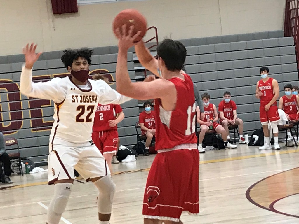 “This St. Joseph team is averaging 74 points per game and they scored 43 in four quarters on our court (before triple overtime) and tonight, our guys just got after it on defense,” Greenwich coach Todd Trimmer said. “We couldn’t make a basket, but it was a great defensive effort by our guys. We’ve been saying it all year, if we can put our defensive effort together for 32 minutes we can beat anybody. I think that we can beat anybody and we showed that tonight.”