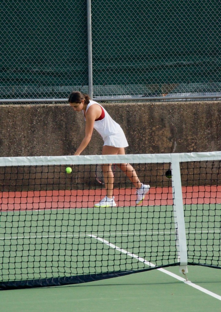 In a hard-fought match that was the final one completed, Cardinals senior Kira Popa and freshman Emily Weinstein pulled out a 7-5, 6-7 (6), 12-10 win against Kate Bucci/Isabel Voellmicke at second doubles. In the No. 3 doubles match, Cardinals sophomores Mei McGuinness/Valentina Rivano were victorious against Tara Ford/Carter Mendez, 6-0, 6-4.