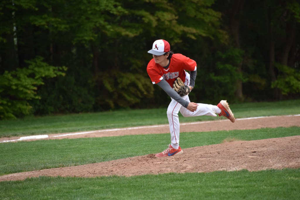 Photo courtesy of Sue Healey: Tommy Healey pitched the Greenwich baseball team to victory against New Canaan.