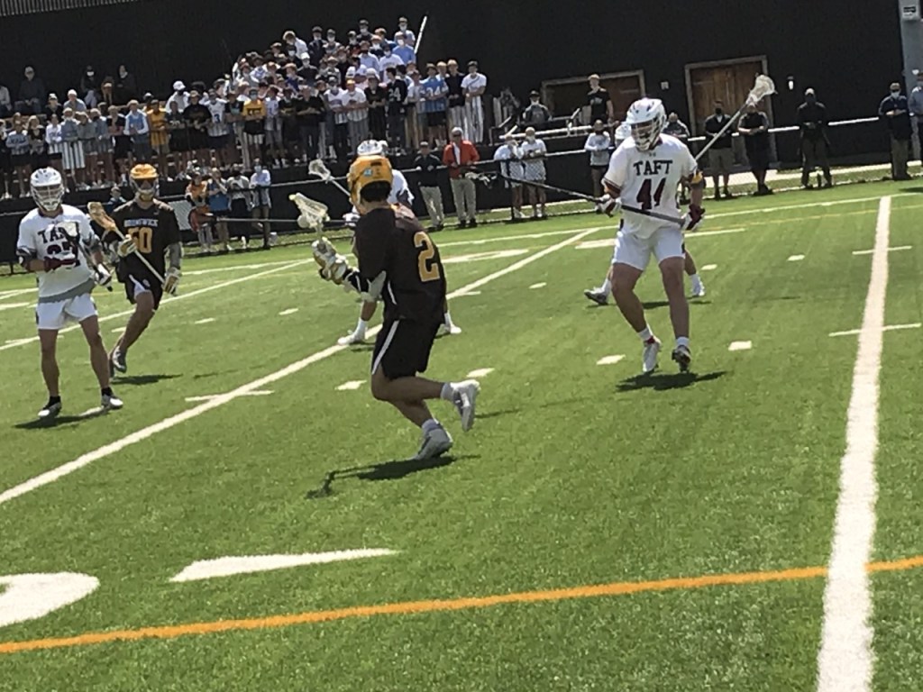 After junior goalie Luke Schlank made a nifty save for the Bruins, Mackesy scored, putting the Bruins on top, 6-2, midway through the second quarter. Senior midfielder Lucas Delgado converted a shot 54 seconds into the third quarter, extending Brunswick’s lead to 7-3. After Ethan Rubenstein’s goal brought Taft to within 8-4, goals from Waters and Mackesy gave the Bruins a comfortable 10-4 lead at the 2:27 mark of the third quarter.