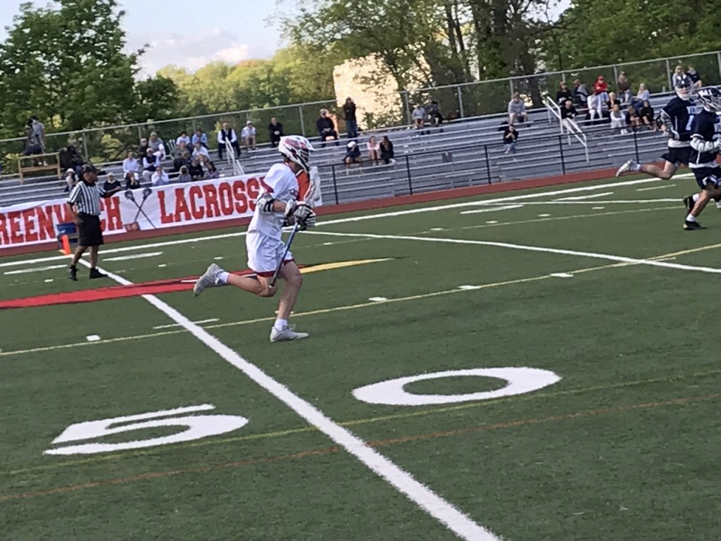 Montesi, a senior midfielder, notched one goal and one assist, while junior midfielder Wesley Zolin had one goal and junior middie Quinn Warwick – who also took the faceoffs – assisted on a goal for Greenwich, which trailed 4-3 at halftime.