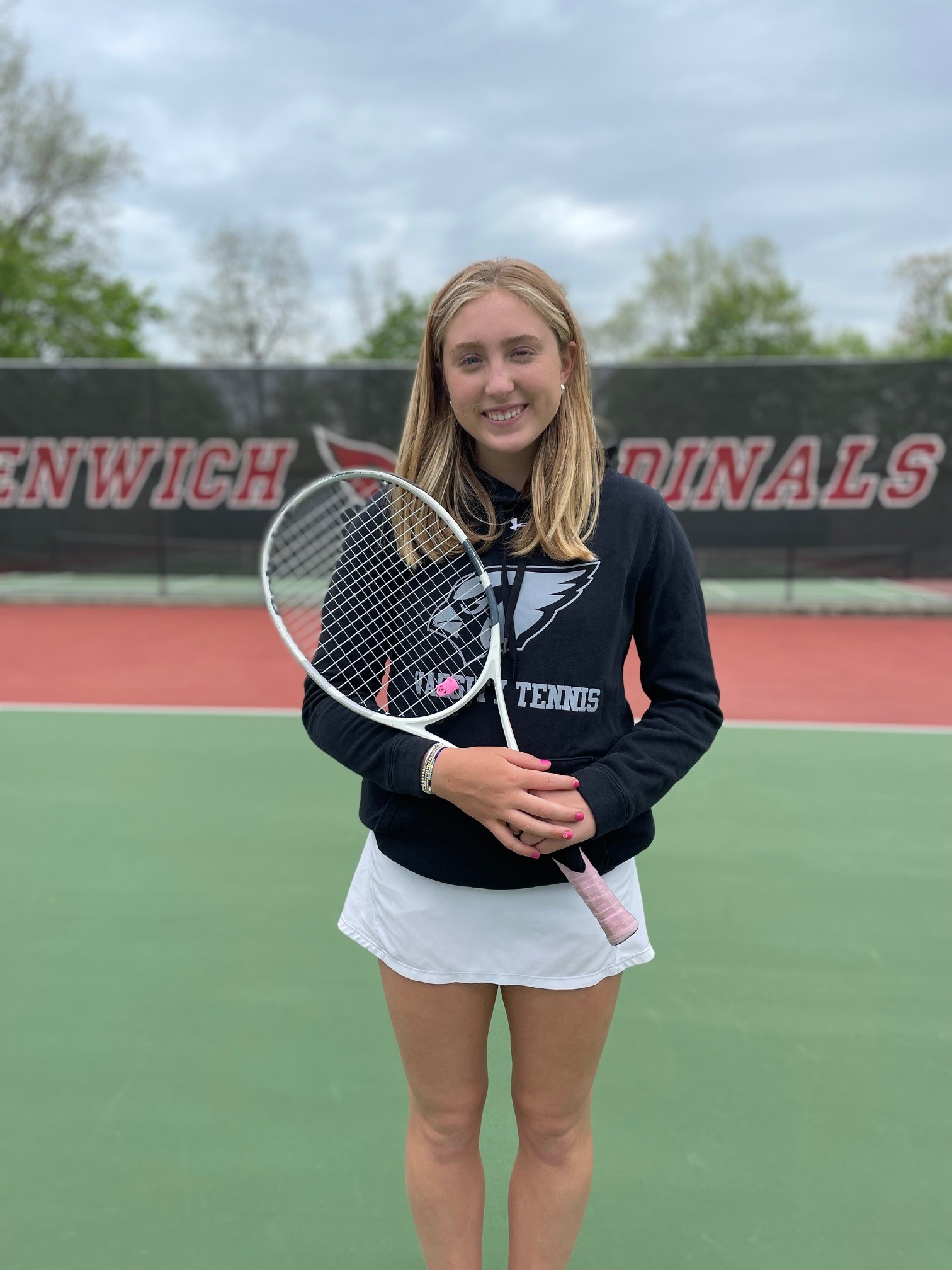 Malena Schraa also earned a spot in Greenwich’s lineup as a freshman and was a force throughout the year. She won the majority of her matches at third singles, defeating most of her foes in straight sets. Schraa will also be a fixture in the singles lineup for the next several seasons. She was recognized as an Honorable Mention selection by the FCIAC.
