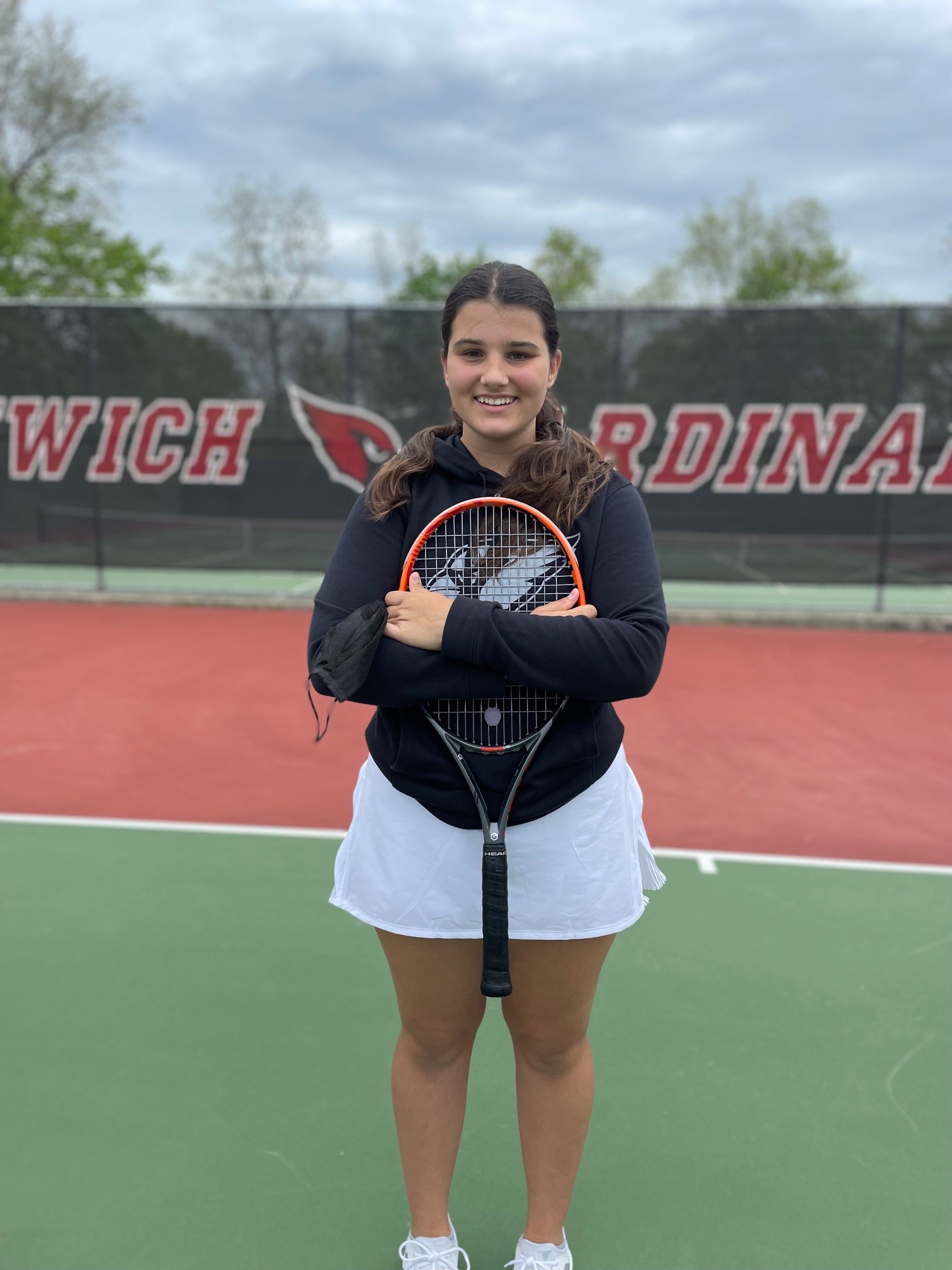 Sophomore Ivanna Diez de Bonilla was selected as an All-FCIAC First Team Singles player. Diez de Bonilla filled the role as the Cardinals’ No. 1 singles player and was up to the challenge. She was victorious in most of her matches at the top singles spot, a position in which she faced strong opponents every match during the season. Diez de Bonilla will be relied upon to help lead the Cardinals singles lineup in future seasons.