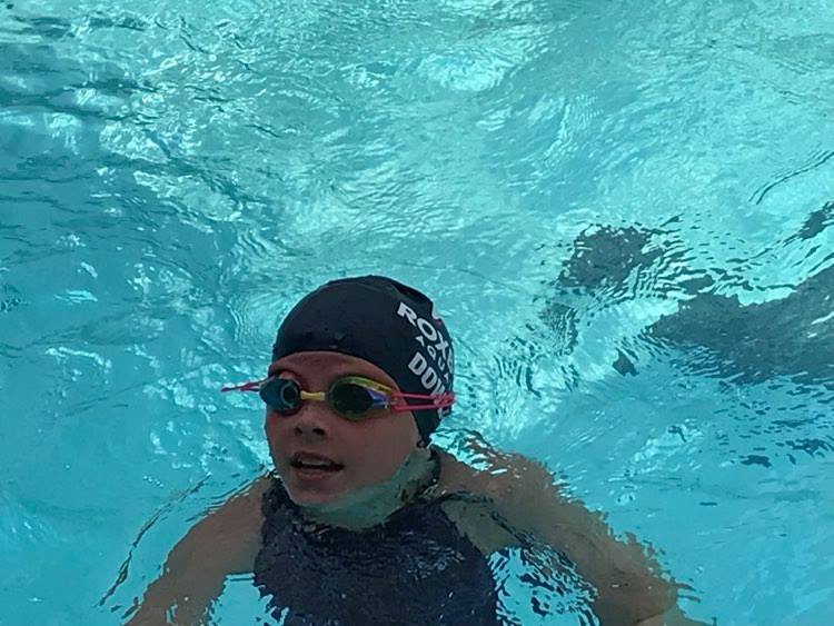 Julia Gustafsson, representing Rocky Point, took the top spot in the girls 14-under 50-meter freestyle. She won the race with a time of :29.12.