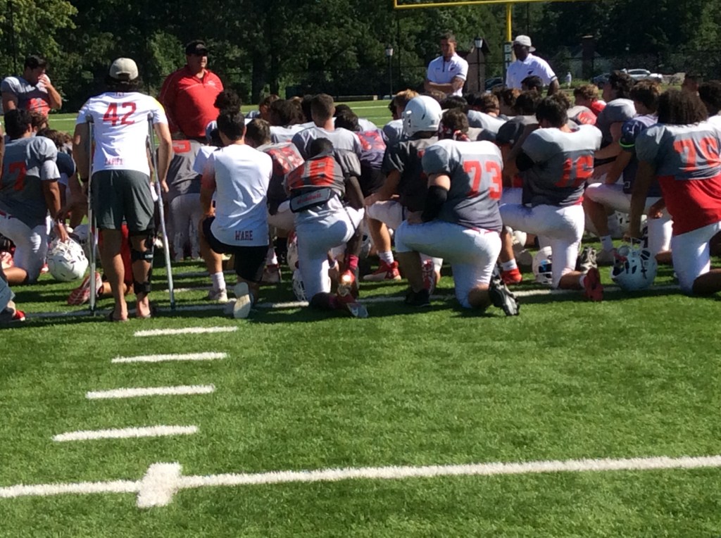Brunswick’s trainers attended to Lloyd, who appeared to suffer a major left leg injury. Emergency Medical Technicians arrived on the scene to help Lloyd, who was put on a stretcher and transported to Greenwich Hospital. In a show of support, Brunswick’s players gathered in the end zone to see their teammate off as he was placed in the ambulance.