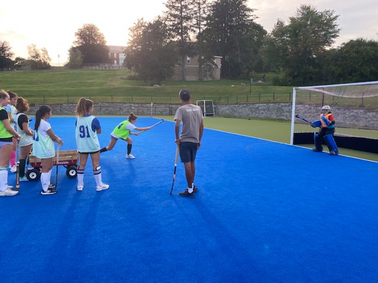 Sophomore Helena Randolph has been in goal for both of these games, and has carried the team to victories. Coach Abdel Eli- Ketani has coached field hockey at Sacred Heart for six years.