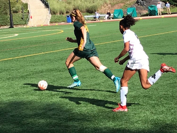 “Este kicked a tremendous punt and it bounced and flew over the Sacred Heart defense and I turned and ran onto it,” Harteveldt said of her goal. “It hit off my knee and I kept running and I think the Sacred heart defense fell and I slipped it in behind the goal. It was a really good feeling and a great start to the game.”