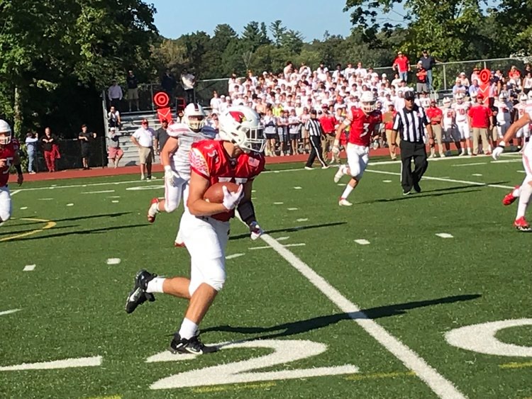 Taking possession to start the game, Fairfield Prep’s opening drive was halted when Smith’s pass was intercepted by Cardinals senior defensive back Jake Carifa. Tyler Cusimano, Carifa, Chason Barber, John Scarlata and Jake Prieto were among some of the players in the secondary that stepped up for the Cards.