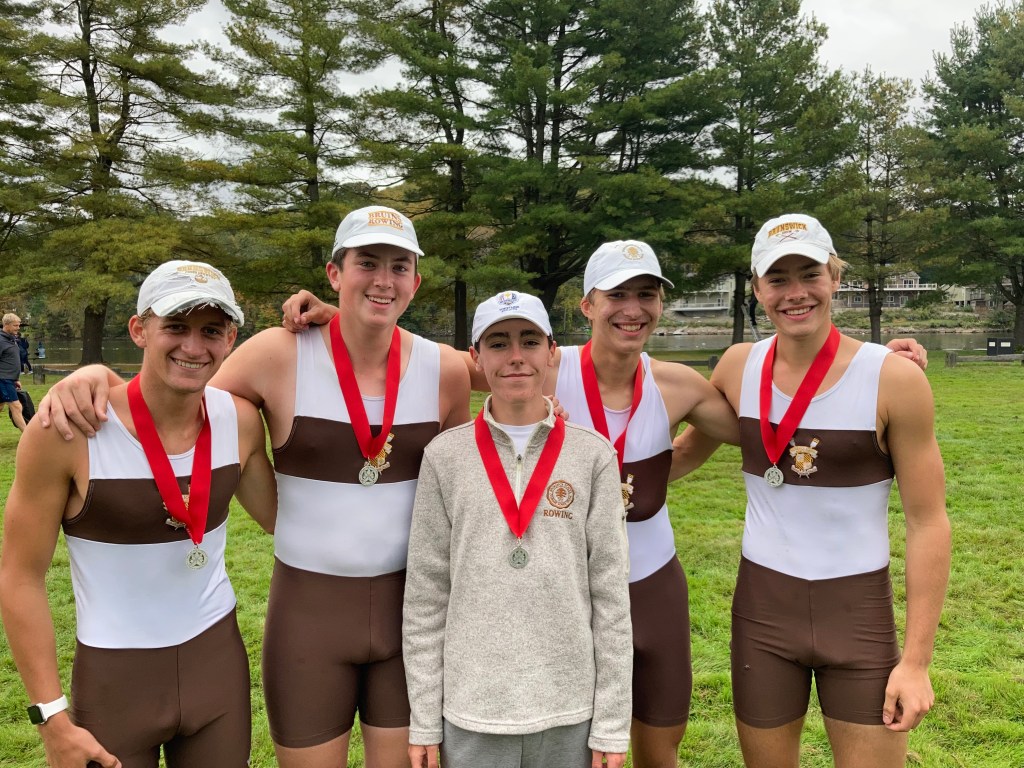 Brunswick’s successful day ended with another medal finish for Brunswick in the 1V 4+ race. The crew of stroke Peter Kapp, a senior co-captain, 3-seat Henry Andren, a sophomore, 2-seat Jimmy Cabot, a junior, bow Ruffin Bryant (junior) and coxswain Max Konzerowsky (senior) earned silver medals (1st among schools) rowing in a field of 19 crews.