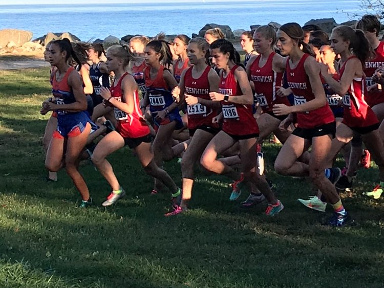 Danbury senior Stephanie Quieroz won today’s 3-mile race at Greenwich Point, registering a time of 18:20.52. Emily Mrakovcic from Wilton was the runner-up (19:21.19) and Greenwich sophomore Esme Daplyn finished third with a time of 20:12.66. Daplyn has been one of the Cards’ top competitors throughout the season.