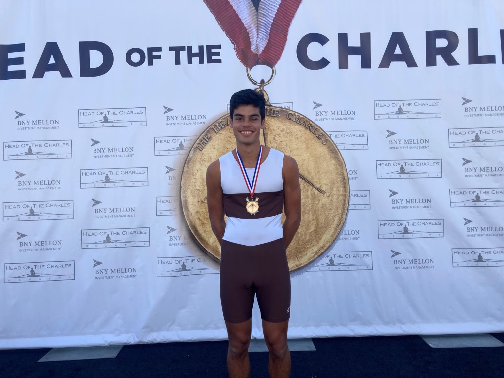 Sam Subramaniam, a junior, started the day with an impressive performance in the single sculls. Sam won a special medal for being the top single sculler in the U-17 age group. He finished 13th out of 48 rowers overall and was the top sculler among those representing one’s school.