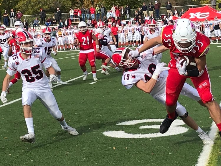 In the second half, Greenwich ran just 17 plays for total of just over 30 yards, as New Canaan controlled the ball and the clock behind Cognetta (22 carries, 108 yards) and Cunney. The Cardinals were held to 39 yards rushing and had a low third down conversion percentage (1 for 10 on third down).