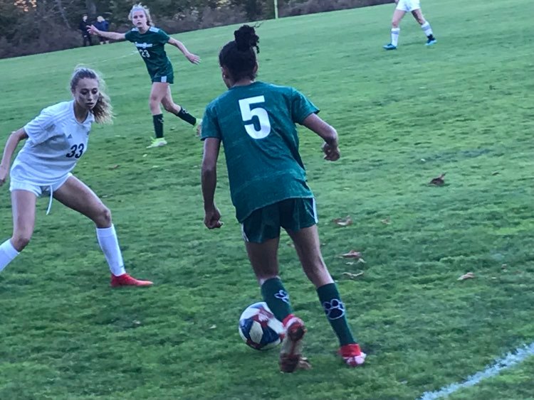 Sophomore Ellie Stevens knotted the score at 1-1 for Rye Country Day, as she rose up for a header off a corner kick and found the back of the net for a goal in the second half.