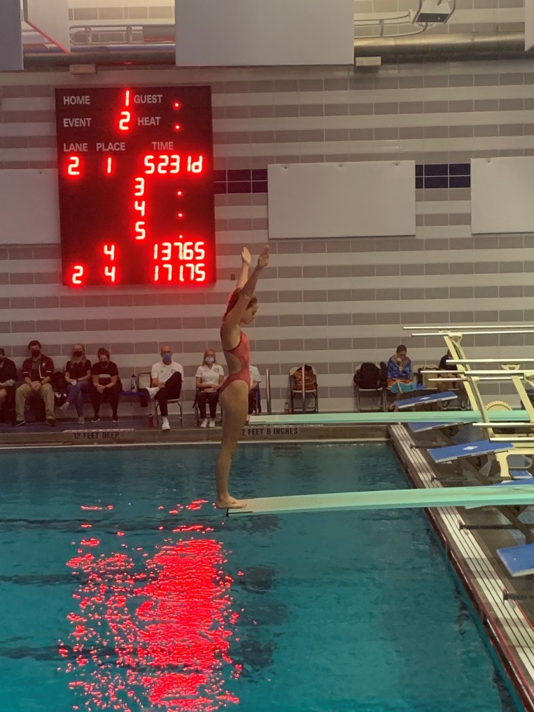 Other divers from FCIAC schools performing well at Thursday’s State Open included Julia Stefanowicz of Westhill-Stamford (eighth, 399.00), Ella Olaffson from New Canaan (381.05, 11th), Kate Whitaker (Staples, 13th, 372.90) and Darien’s Megan Hayes (16th, 364.35), Lilly Wurm (22nd, 332.55), Annelise Enters (332.00, 23rd) and Olivia Perkins (24th, 325.25).