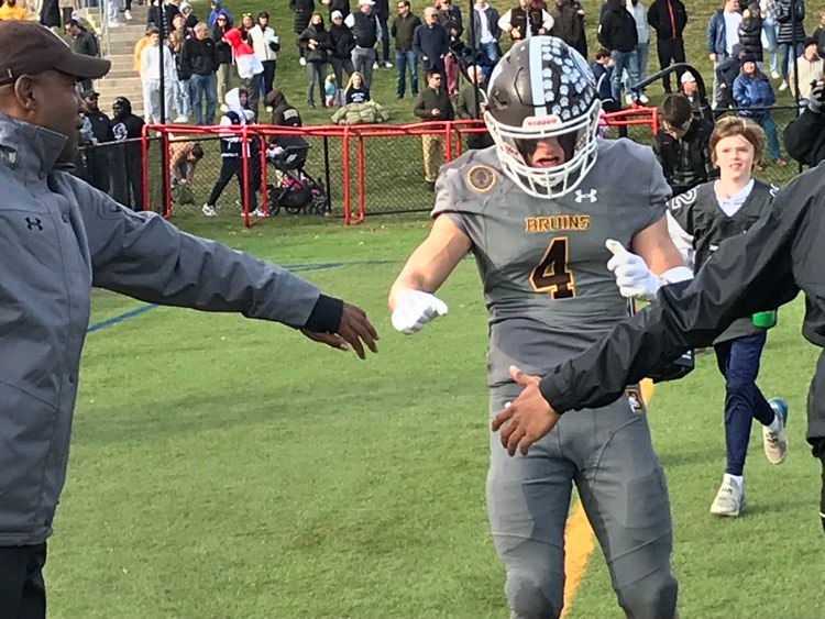The Bruins fell behind, 28-14, when O’Brien snuck into the end zone on a 1-yard run with 4:47 to go in the third quarter. Brunswick made it a one-score game again though, relying on the dynamic Eason, whose had a knack for rallying the team in the fourth quarter this season. Following several strong runs, Eason caught a 20-yard touchdown pass from Lauter, who rolled to his right on the play, brining Brunswick to within 28-21 with 8:57 left in the fourth quarter.