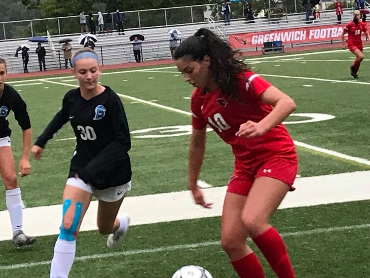 Greenwich’s Scarlett Brooks in action during a game against Westhill at Cardinal Stadium.