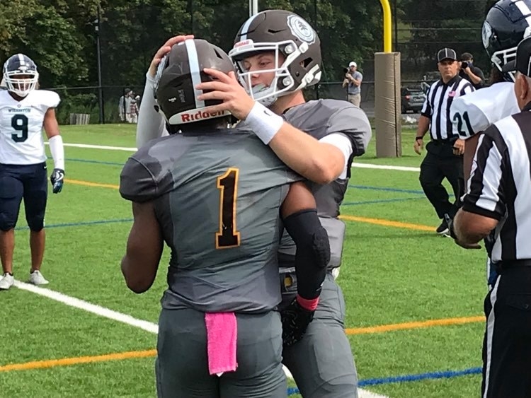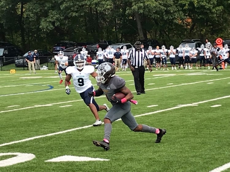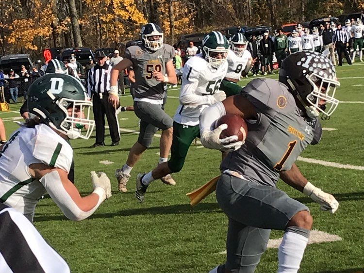 Kh’alil Eason, left and right and Danny Lauter helped lead the Brunswick School football team to a record of 7-3 this past season, including a berth in the NEPSAC Mike Silipo Bowl, where they lost to Deerfield Academy.