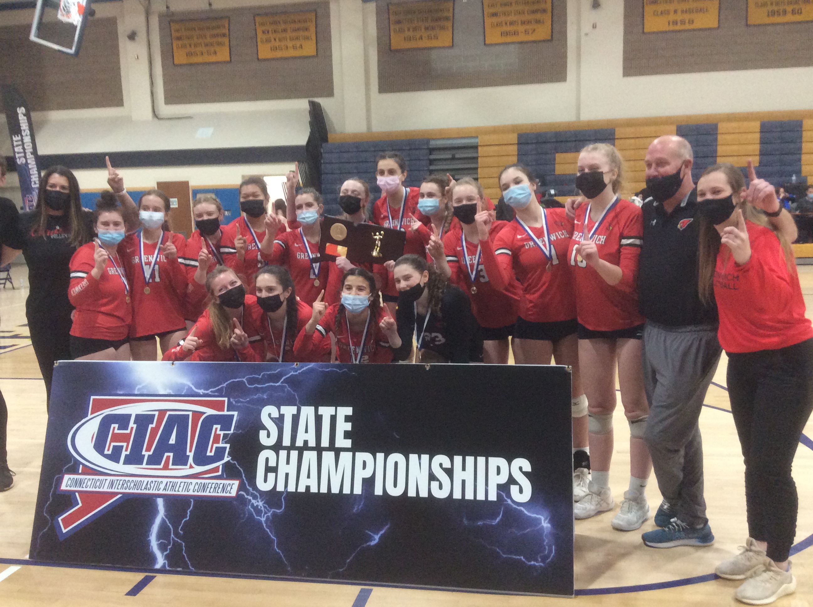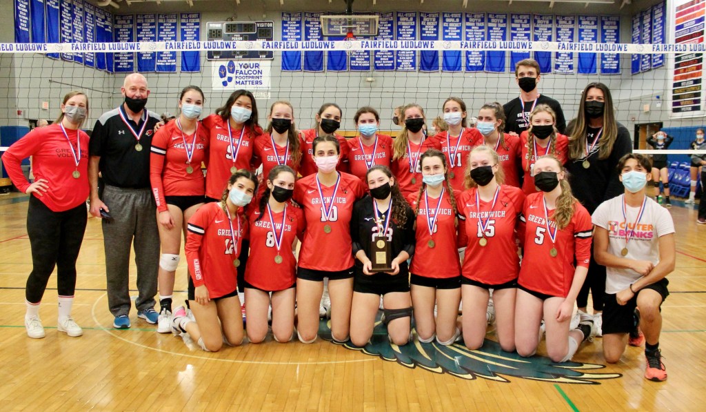 Photo by Cindy Saleeby: Greenwich High School’s girls volleyball team captured the 2021 FCIAC championship.