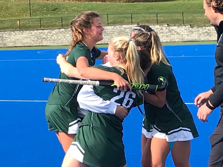 Sacred Heart celebrates after winning the FAA Tournament field hockey title.