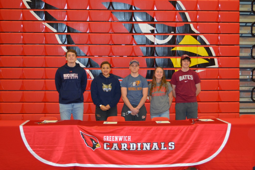 A group of fantastic five student-athletes gathered at Greenwich High School’s gymnasium Wednesday morning, where they each enjoyed their signature moment.