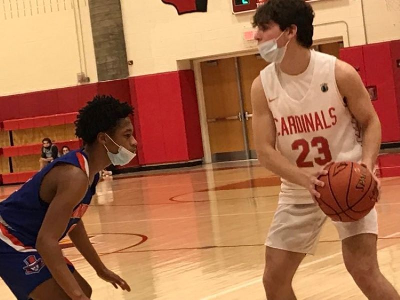 Pilc’s turnaround jumper from the baseline and Galletta’s lefty layup, gave the home team a 13-9 advantage following the first quarter. Junior guard Dean Brown and sophomore guard Aidan Karson each swished 3-pointers, making it 22-19 in the Cardinals’ favor, at halftime.