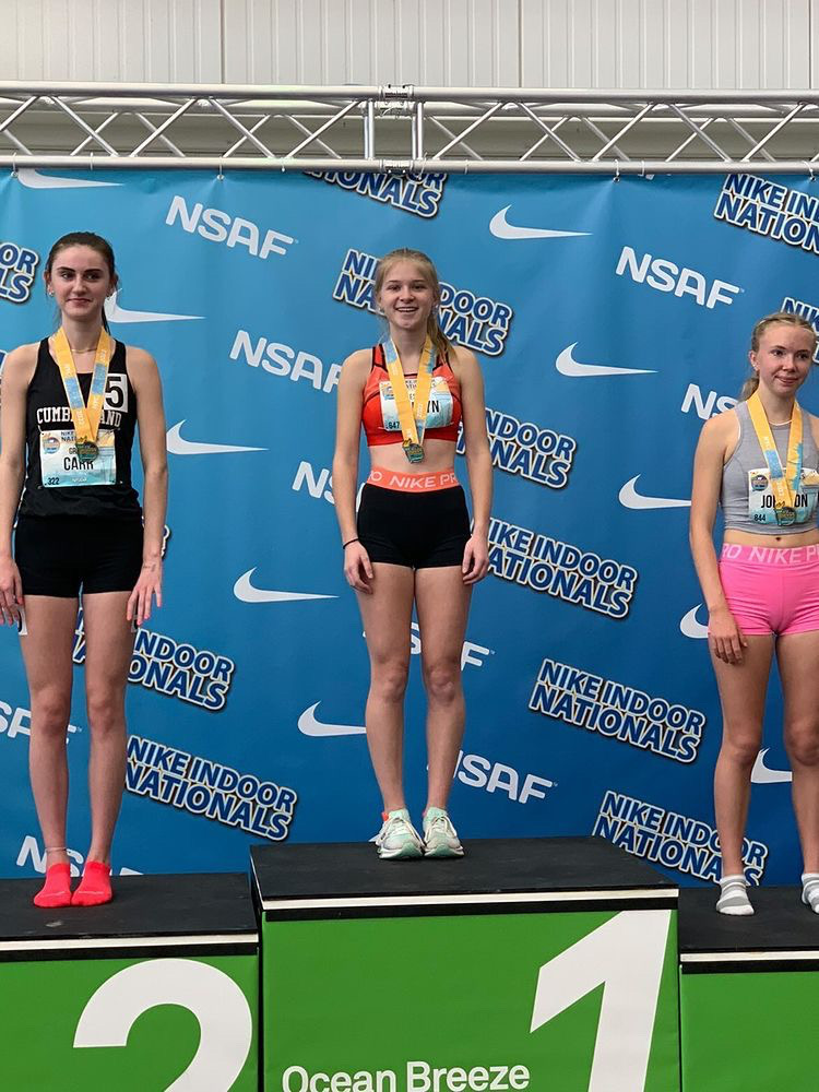 Daplyn was two times a champion at Nationals. After competing in the sprint medley relay at the New Balance Nationals, she tested her skills in the Nike Indoor Nationals today at Ocean Breeze Athletic Complex in Staten Island, N.Y. She went on to win the 800-meter run in the Emerging Elite division, registering a time of 2:17.34. Grace Carr from Cumberland, Rhode Island, was the second-place finisher, clocking in at 2:19.36 in the event, which included 27 competitors.