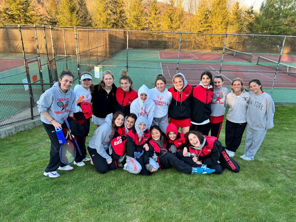 Greenwich received singles wins from sophomore Kyra Dybas at No. 2 and sophomore Lilly Foley at No. 4. Dybas defeated sophomore Ava Treat, 7-5, 6-4 at second singles. Foley topped Ridgefield’s Ciara Hourihan in a tight match, 2-6, 7-5, 7-5 at fourth singles.