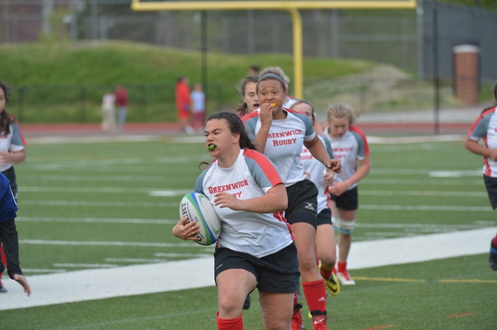 Gega opened the scoring for the Cardinals by making her way into the try zone in the second minute. She then made the conversion kick, giving the home team a 7-0 lead. In the 22nd minute, junior Nathalie Rojas scored a try and Gega again made the kick, putting Greenwich ahead, 14-0.