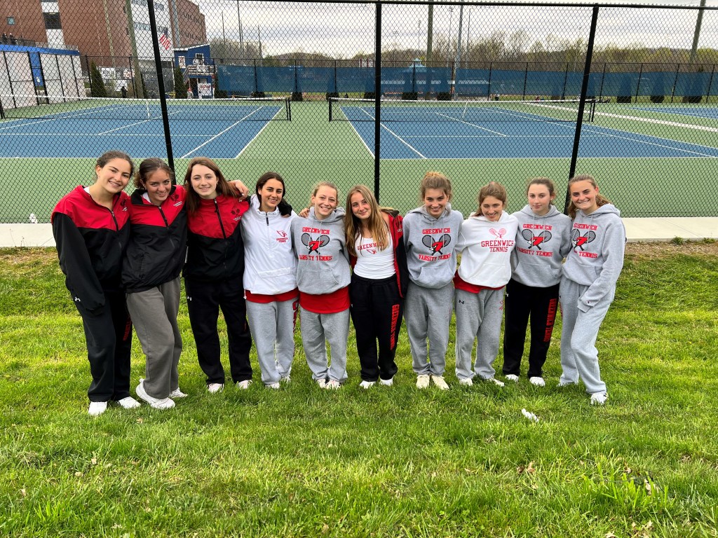 In the Cards’ 7-0 triumph against Danbury on Tuesday, junior Ivanna Diez de Bonilla breezed to a 6-0, 6-0 win at first singles. Dybas was a 6-0, 6-0 winner at second singles, while Foley won her match at No. 3, 6-1, 6-0. At the No. 4 singles spot, Greenwich freshman Izzy Everett coasted to a 6-1, 6-0 victory.