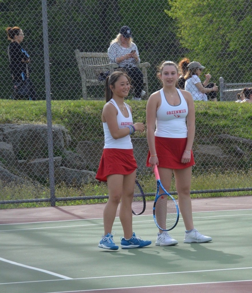 Greenwich’s No. 1 doubles team of senior co-captain Courteney Sheets and junior Julia Tamis were victorious against Westhill’s duo of Amanda Smeriglio and Ella MacPherson, 6-2, 6-1.