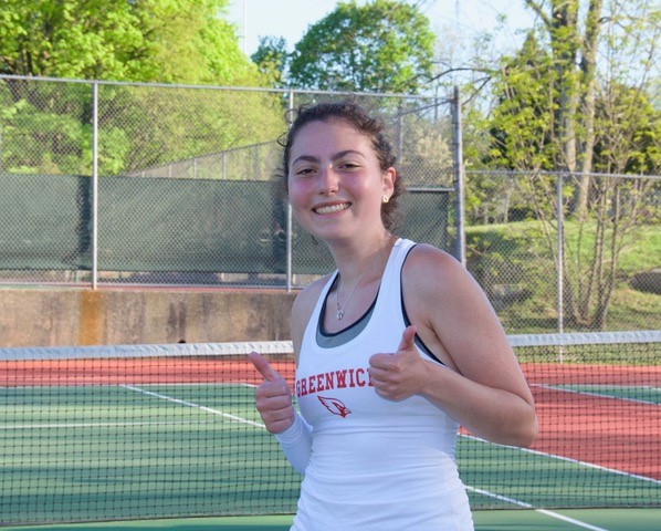 Second singles saw Cardinals junior Kyra Dybas post a 6-0, 6-0 win against Maria Riveira. In the No. 3 singles match, Finkelstein won in three sets against Stamford senior Lenora Lipson, 5-7, 6-1, 6-0.