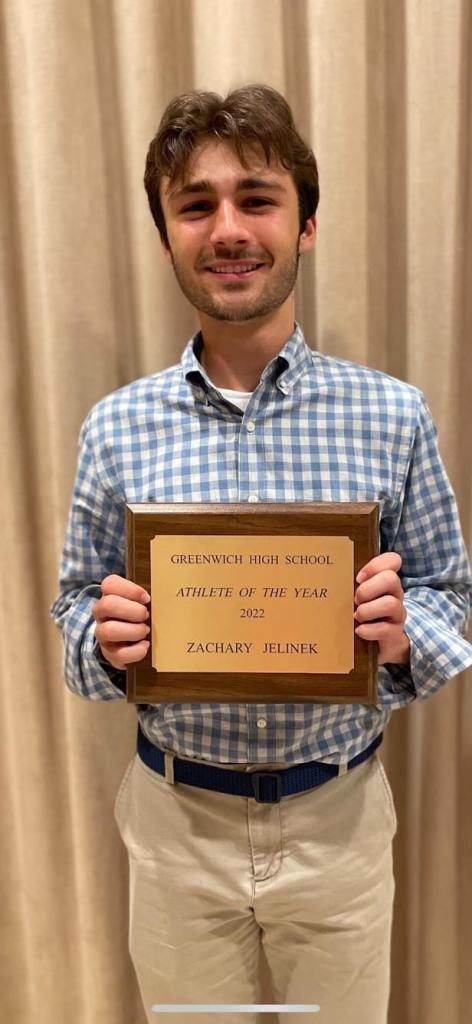 Zachary Jelinek knew he was receiving an award when he was invited to attend Greenwich High School’s Senior Awards night recently, but he wasn’t sure what it would be.