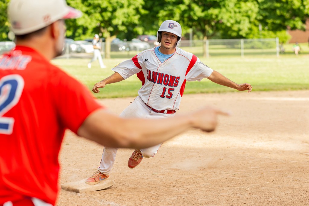 In the third inning, the home team extended its advantage to 7-1. Shortstop Tommy Healey (2022 GHS graduate) drove in a run with a fielder’s chose ground ball, Zack Alza delivered an RBI single and Marc Thibeault hit a run-scoring single in the third for the Cannons.