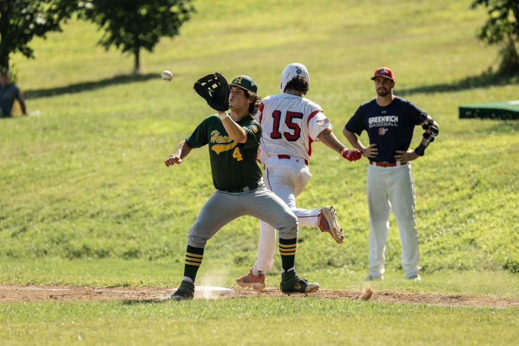 At the plate, Greenwich was ignited by leadoff hitter/second baseman Riley Redahan, who went 3 for 4 with a double and an RBI, first baseman Nathan Jones (3 for 4, two RBIs), shortstop Tommy Healey (two hits, two RBIs), Alza 2 for 4, two RBIs) and third baseman Justin Zych (two hits, three runs scored).