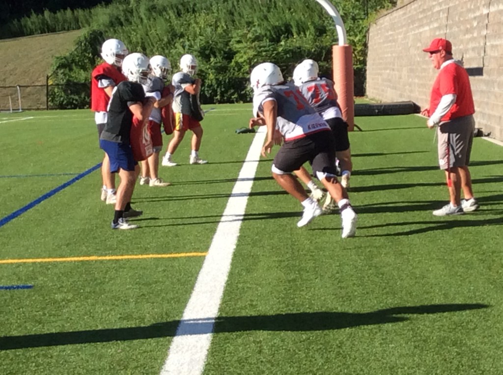 OFFENSIVE LINE: With four seniors and a sophomore who started last year, the Cards have a powerful, experienced unit up front. Kiernan (6-2, 265) will help anchor the line from his left tackle position. Sophomore Peter Vomvolakis (6-2, 285) will start at right tackle and senior Vinny Insinga (6-2, 280) returns at right guard. Senior Teddy Flinn (5-10, 205) is back as the starting center and Drew Falla (6-3, 290) will line up at left guard.