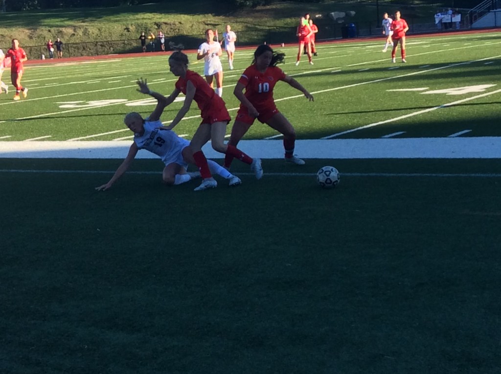 Greenwich High School’s girls soccer team evened its record to 3-3 and earned three points in the all-important FCIAC standings with a well-earned 2-1 victory over Trumbull in an FCIAC game held at Cardinal Stadium on Friday.