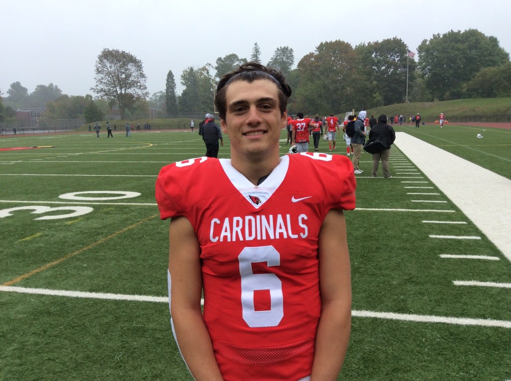 Cardinals junior quarterback Rocco Grillo got some work in the second quarter in place of Wilson, with GHS dominating the game. Grillo promptly showed his strong arm, throwing a 29-yard touchdown pass down the left sideline to junior wideout Gavyn Gennarelli for a 49-0 Cardinals lead with six minutes remaining in the second quarter.