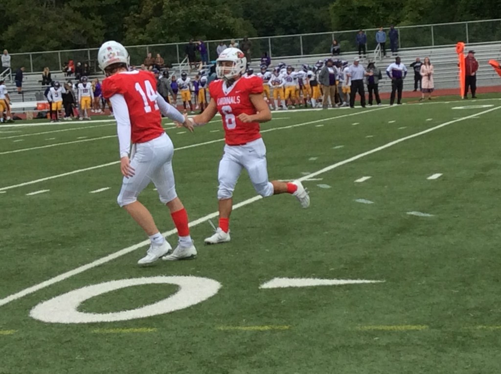 The Cardinals won the battle at the line of scrimmage on both ends of the ball, with its offensive line, led by senior Jake Kiernan, senior Teddy Flinn, sophomore Peter Vomvolakis, senior Drew Falla and senior Vincent Insinga, opening holes for the running backs and protecting Wilson.