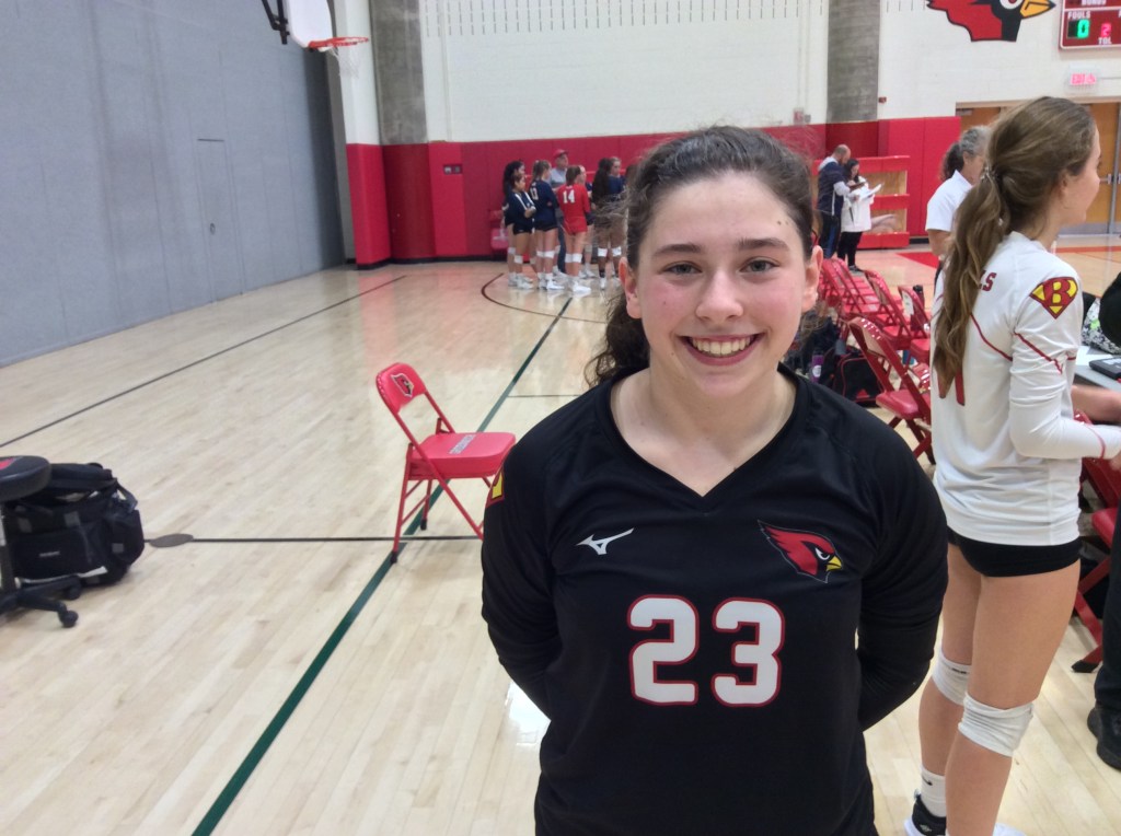 Katherine Ford, also a senior tri-captain, notched seven kills, 17 digs and two aces for the Cards.