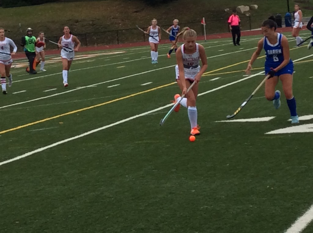 Darien tied the score at 1-1 lead when junior Ashley Stockdale scored 4:26 remaining in the first quarter. Greenwich took a 1-0 lead, courtesy of a goal by sophomore forward Stella Thibeault. On the Cardinals’ goal, freshman Emilia Arroyo was carrying the ball up the field, while Mueffelmann and Thibeault filled lanes and a pass was sent to Thibeault, who sent a shot off Darien’s goalie’s pads for the goal, which occurred at the 9:02 mark of the first quarter.