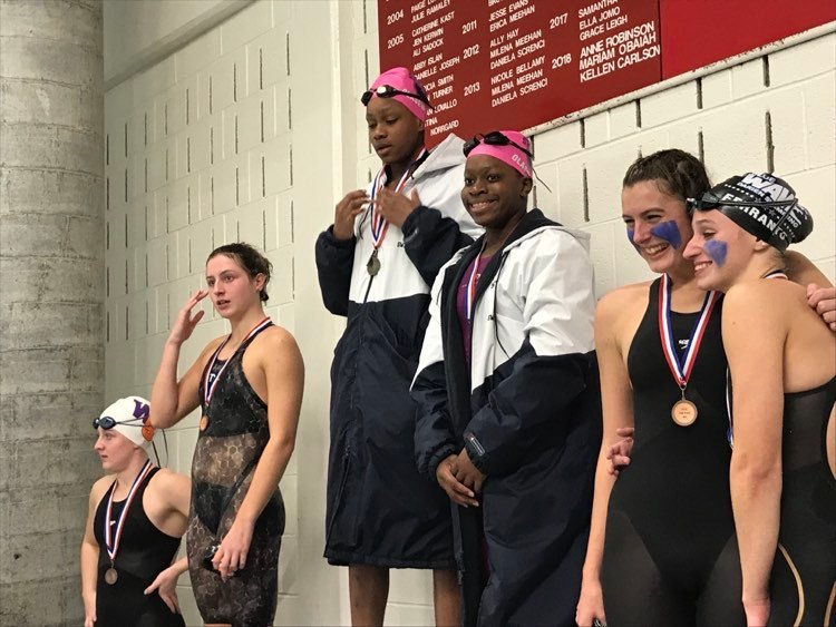 Gussen of Ridgefield was declared the victor of the 100 backstroke race after Archibald and Westhill/Stamford’s Olivia Cieciwa accidently swam in the wrong lanes and were disqualified. They finished first and second, respectively, but their times were not allowed, so Gussen who had the third-best time was awarded the first-place medal in the event.