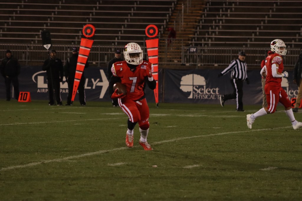 Greenwich, which last won the state title in 2018 entering tonight’s game against the Jesuits, scored first in this state final showdown. Dixon intercepted a Smith pass along the right sideline and returned it 26 yards to the end zone for a touchdown, giving Greenwich a 6-0 lead with 9:30 remaining in the first quarter.