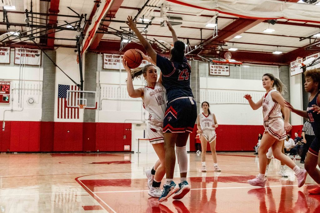 A 3-pointer off an inbound pass by Smego and a basket off a strong move in the low post by Xhekaj gave GHS a 28-7 edge at the 2:30 mark of the second quarter. The Cards went into halftime up, 33-14.