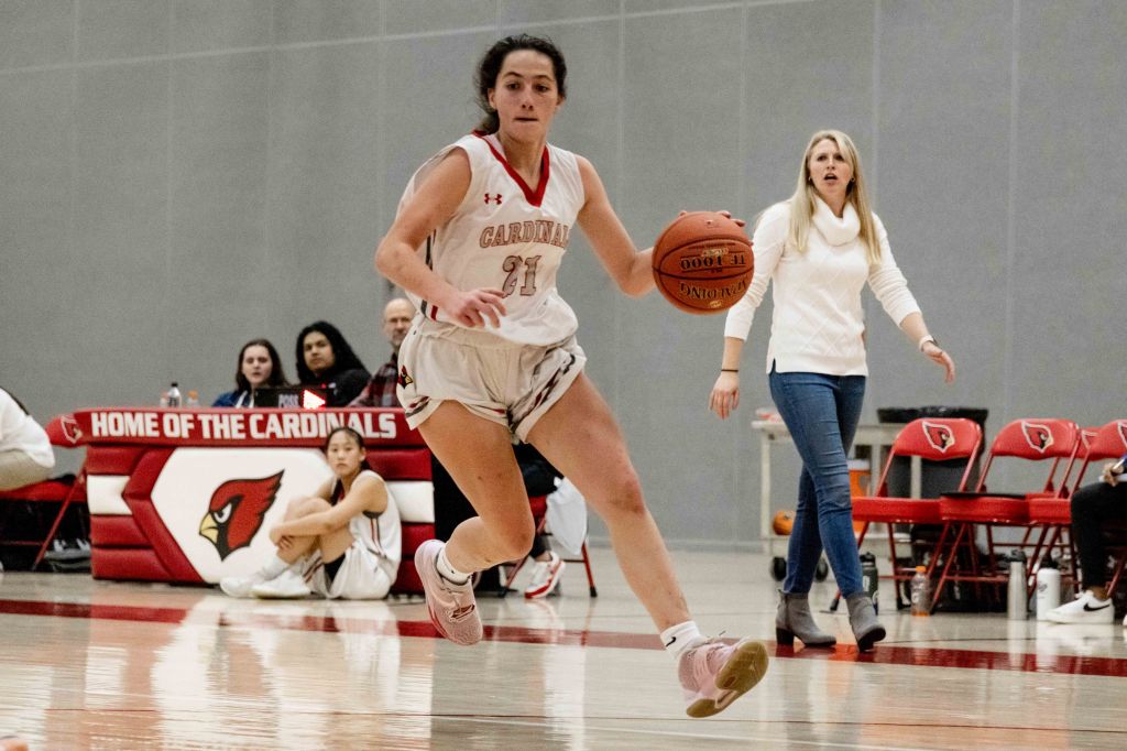 A 3-pointer from the top of the key by Frankle, followed by a jump shot from the short corner by Young made it 16-2 with 1:50 remaining in the second quarter. After Sergio made a foul shot, freshman guard Madi Utzinger swished a 3-pointer against McMahon’s zone defense, putting the Cards in front, 20-2.