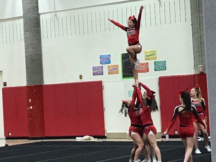 Greenwich High School’s varsity cheerleaders were on hand to root for the Cardinals’ boys basketball team.