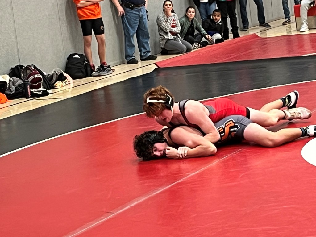 Like his older brother, Colin Falla, got his opponent in a headlock and put him to the mat for the pin.