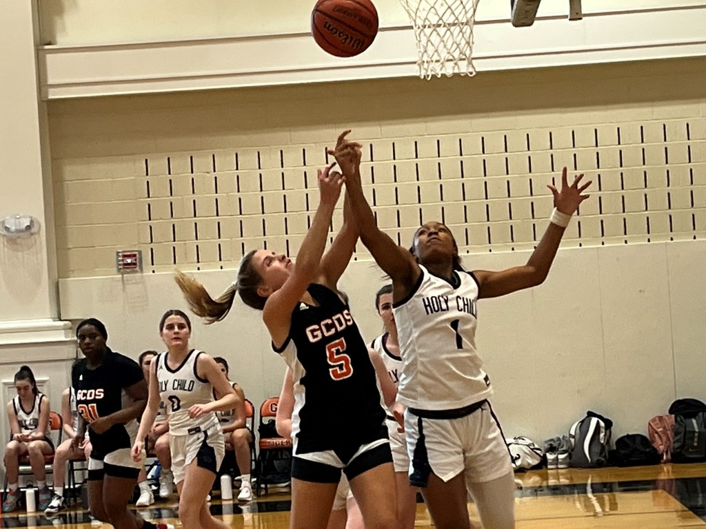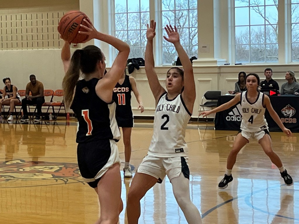 McDermott scored eight of the Tigers’ first 12 points to help the home team play the Gryphons to a 12-12 tie late in the opening quarter. Ferry’s 3-pointer from the left corner gave GCDS a 15-14 advantage, but Holy Child went on a 7-1 run to go ahead, 21-16. Junior forward Zanyah Bernard helped pace Holy Child’s spurt. She scored a game-high 20 points, doing a lot of damage from the foul line – she converted 11 of 13 free throws for the Gryphons.
