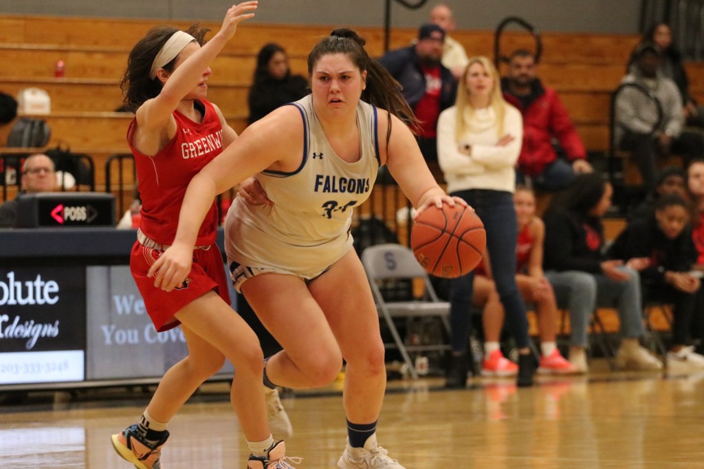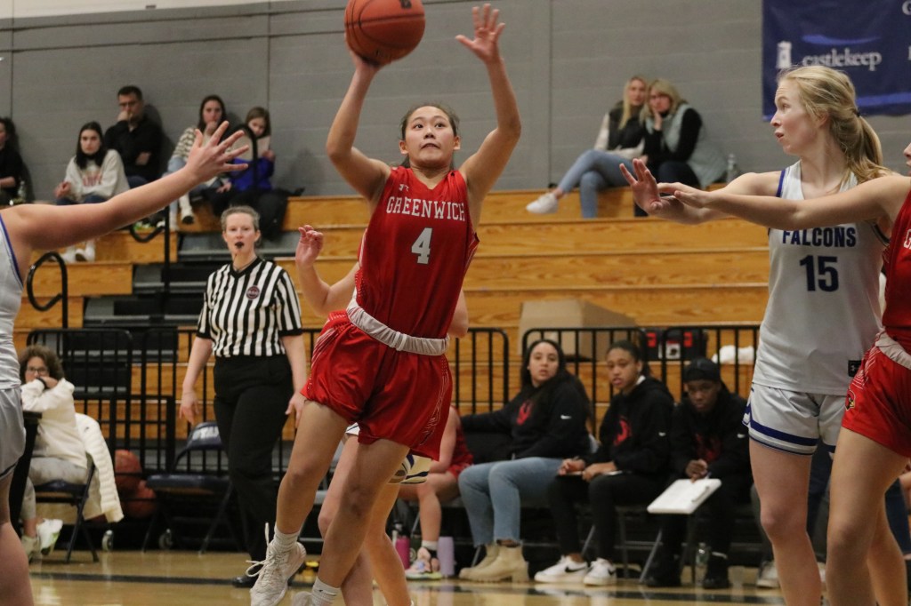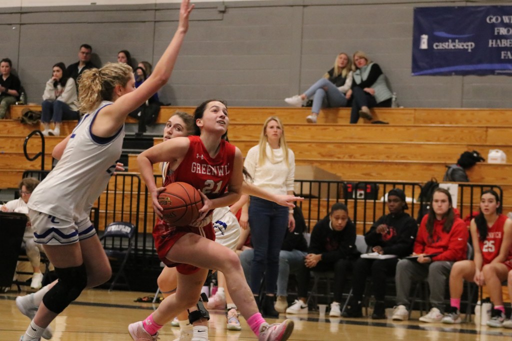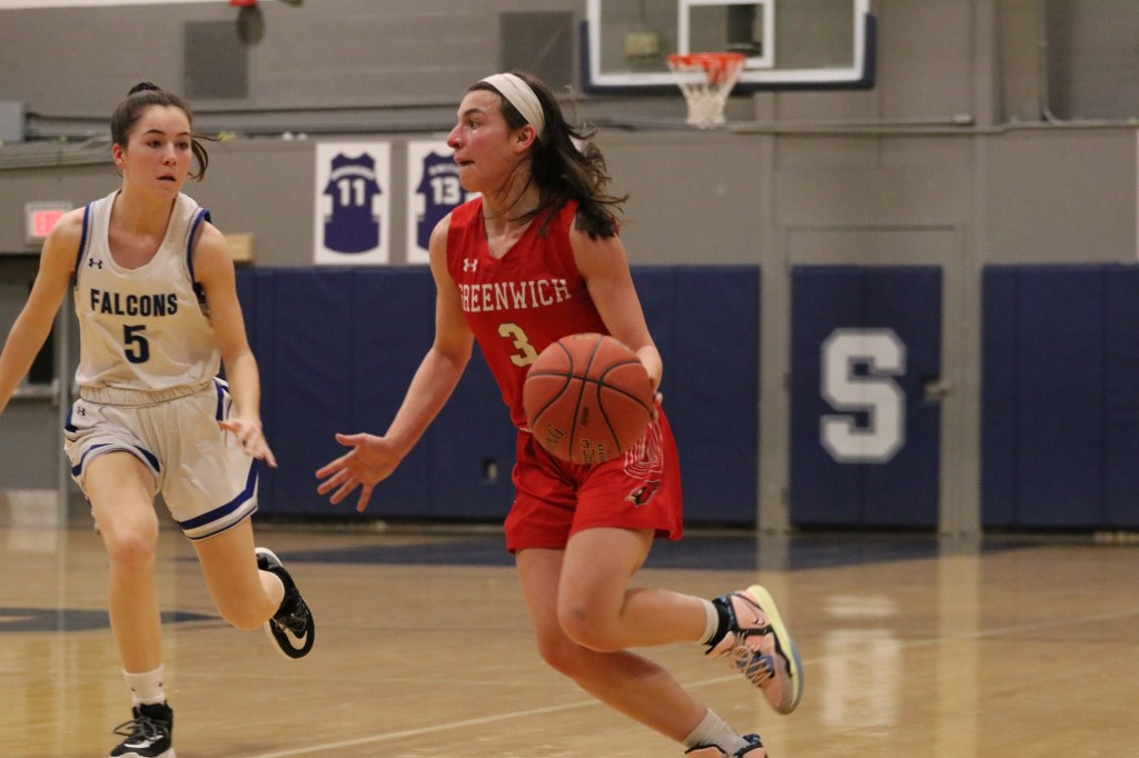 “I think we had really high expectations going into the game,” said Greenwich senior guard Sophia Sergio, also a tri-captain. “Last game against them we lost by 10, but we weren’t hitting any of our shots tonight. The game wasn’t going how we thought it was going to go, but we fought to the end, so I guess that’s all you can do in that situation.”