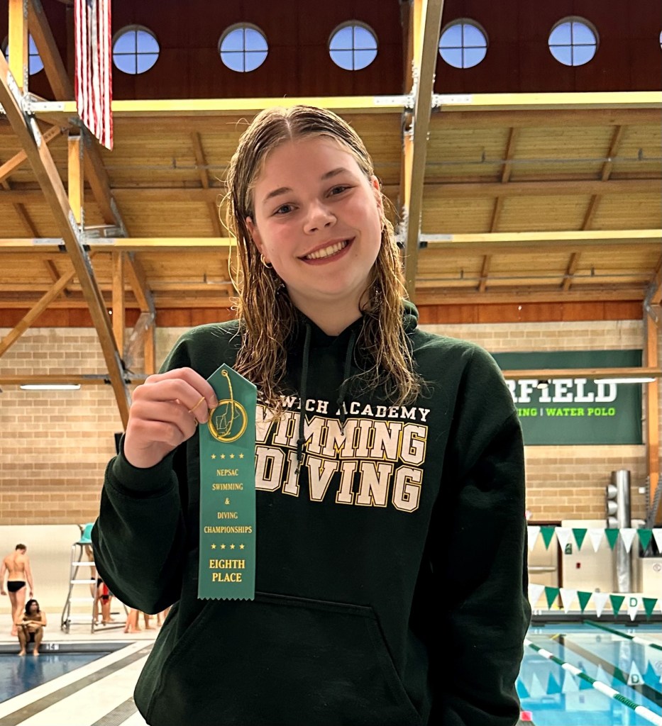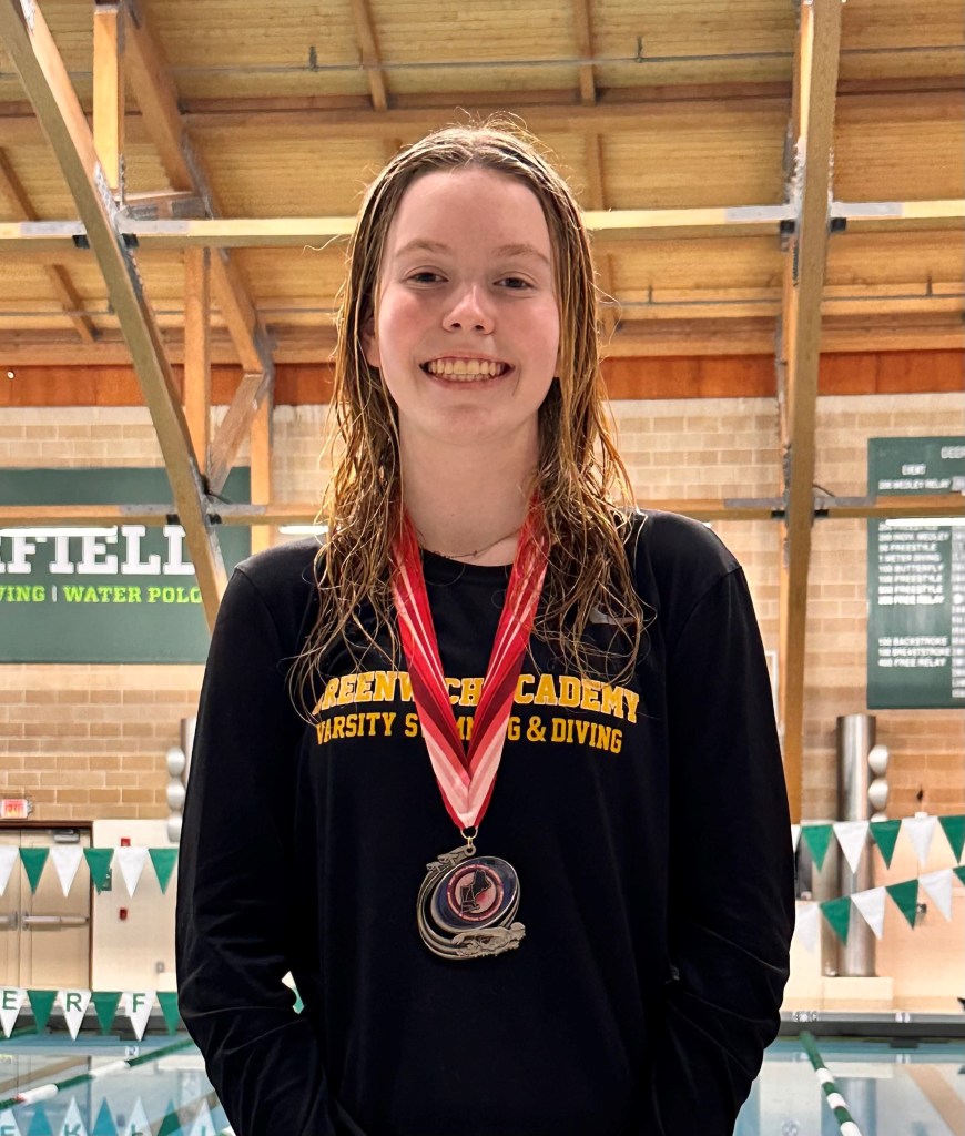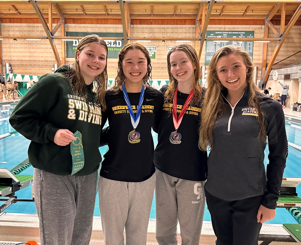 Grayson Ford, a Greenwich Academy freshman, finished second at the NEPSSA Division I Diving Championships, posting a score of 428.65 points. Teammate Abbie Schmitt, a sophomore placed eighth for GA (334.20 points) at the championship meet, which featured 21 competitors.